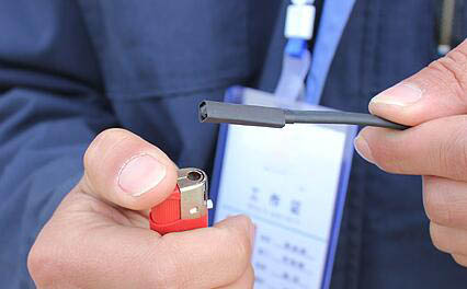 3、之后将剩余的2厘米热缩管反向折叠压紧,用打火机均匀加热,使折叠的热缩管定型;